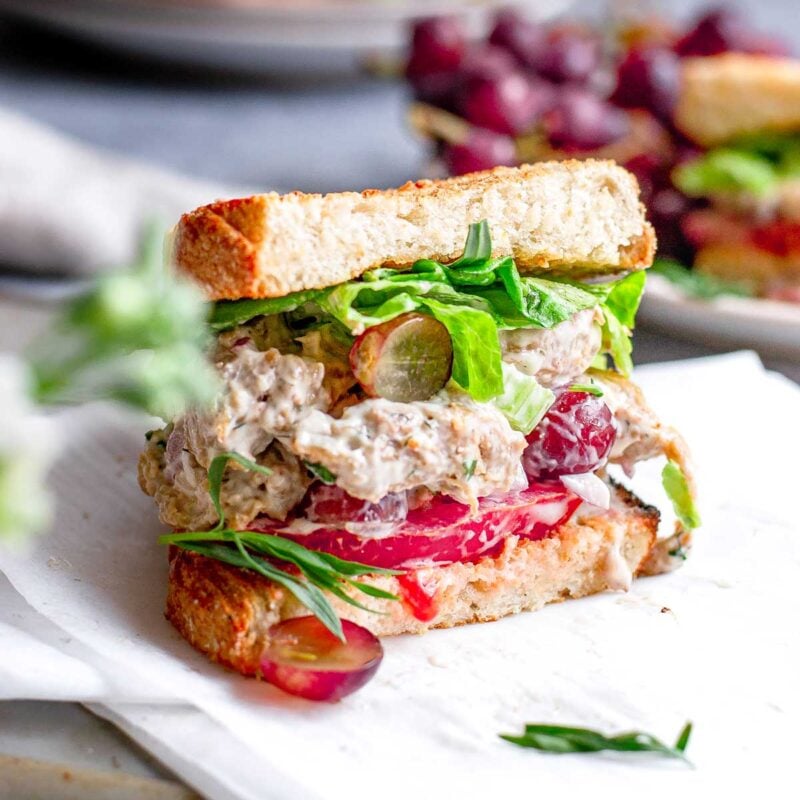 If you’re looking for a realistic vegetarian or vegan chicken salad that you can bring to family gatherings or to share with omnivore friends, then this is the recipe for you! It’s high protein, creamy, savory and so good layered on crusty sourdough.